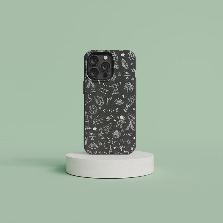 Protect your phone with our durable and compostable Black Astronomy Phone Case, featuring a unique print of comets, astronauts, UFOs, planets, and telescopes. Perfect for any astronomy lover or space enthusiast!
