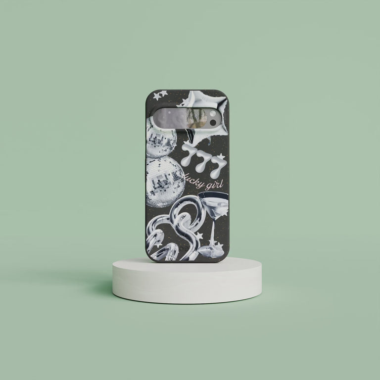 Channel your inner “lucky girl” with the Cosmic Luck Phone Case! Drenched in silver vibes with disco balls, stars, and lucky symbols, this case is a dazzling mix of cosmic charm and party-ready style. Whether you’re feeling fabulous or just looking for a sprinkle of good fortune, this design has you covered. Slip on this case, and let the universe bring a little extra sparkle your way!