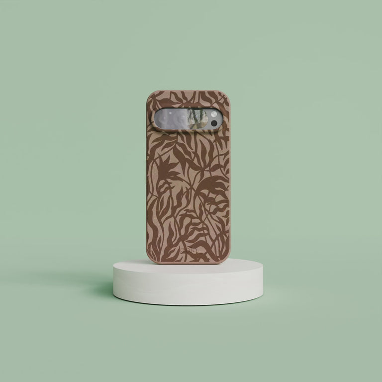 Chocolate Brown Rustic Leaves Google Pixel 9/9 Pro Case