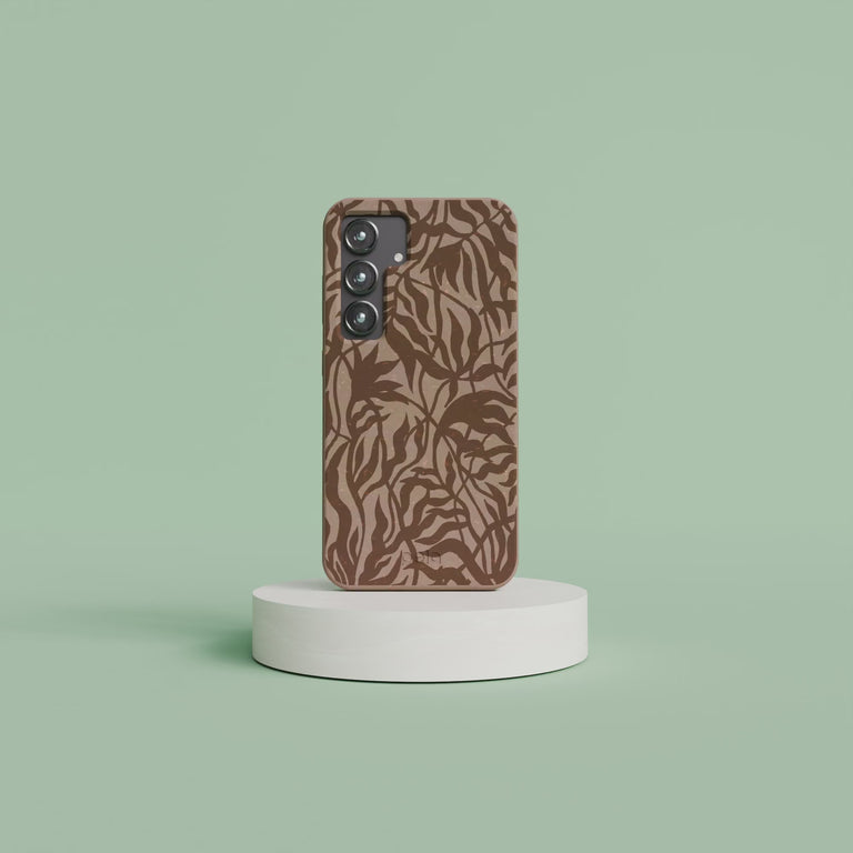 Chocolate Brown Rustic Leaves Samsung Galaxy S24 Case