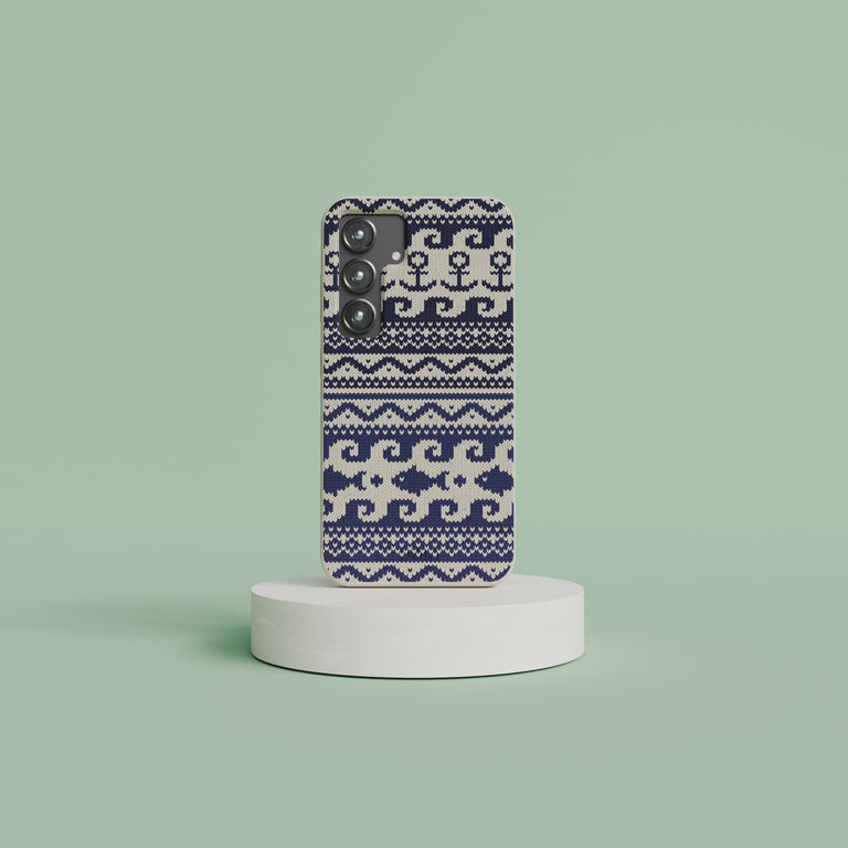 Cozy up to the salty sea breeze with Ocean Knit Phone Case! Inspired by classic fisherman sweaters, this case features a knitted wave and anchor pattern in deep navy tones. Whether you're out on the water or just love a good nautical vibe, this case keeps things warm, stylish, and sustainable.๐๐งถ