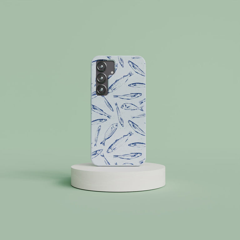Dive into the deep blue with the Pela Fishery Phone Case, featuring an elegant school of fish swimming across a soothing powder blue background. This case is perfect for those who dream of ocean breezes and the calm of underwater worlds. Crafted from environmentally friendly, compostable materials, it not only protects your phone but also the seas it celebrates. Ideal for marine enthusiasts and eco-warriors alike, this case brings a touch of the ocean's grace to your daily life while keeping your tech safe from the rough waters of everyday use. Let every call remind you of the beauty beneath the waves! 🐠💧