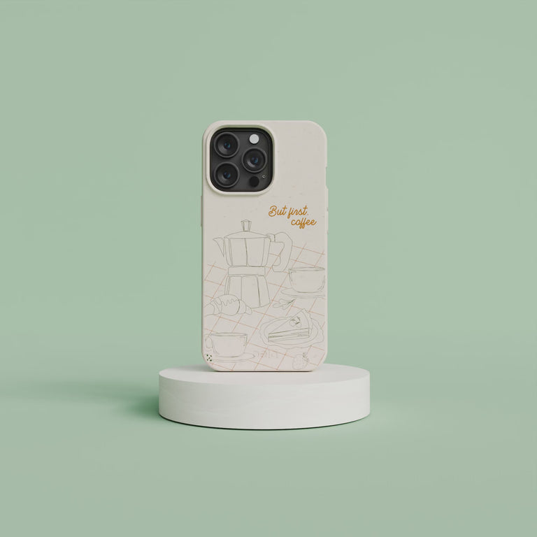 ☕️✨ Start your day with a smile and a reminder of what truly matters with the But First Phone Case by Pela! This whimsical design features a charming coffee setup complete with a steaming moka pot, cozy cups, and a delectable pastry spread. The phrase "But first, coffee" adds a playful touch, making it the perfect case for coffee lovers who need their morning brew to get going. Protect your phone while showcasing your caffeine passion—because we all know nothing happens until that first sip! 📱☕️🥐