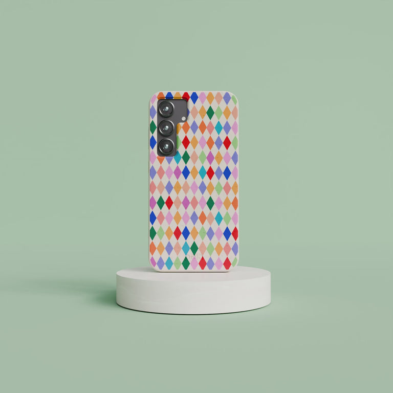 Step right up and dazzle your senses with Carnival Jewels!🎪 Inspired by the glimmering costumes and electric energy of a vintage circus, this case is a mosaic of bold, brilliant color—like a handful of confetti tossed in the air. The classic harlequin pattern gets a modern, eco-friendly twist, making your phone the ultimate ringmaster of style.