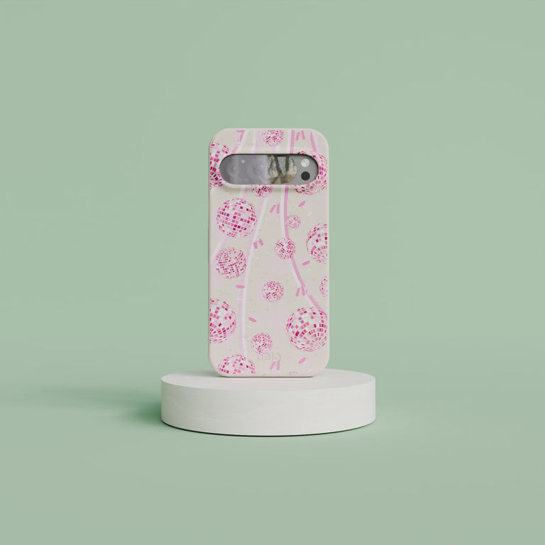 Step into the spotlight with the Dancing Lights Phone Case, a part of our delightful Cheers to You Collection. Featuring a playful pattern of pink disco balls, party ribbon and champagne glasses, this case is perfect for those who carry the rhythm of the night in their hearts. 🎉✨🌱
