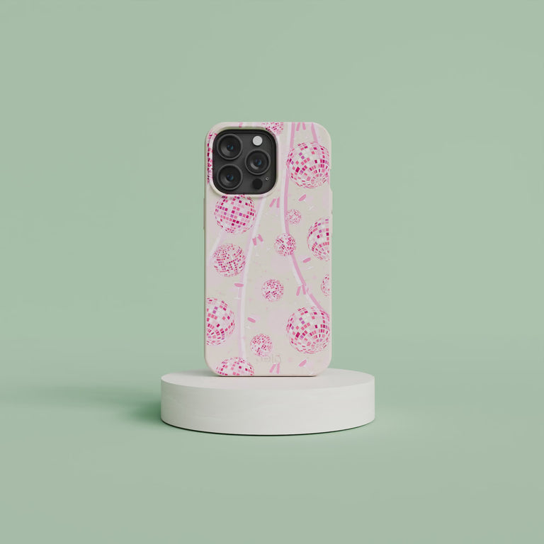 Step into the spotlight with the Dancing Lights Phone Case, a part of our delightful Cheers to You Collection. Featuring a playful pattern of pink disco balls, party ribbon and champagne glasses, this case is perfect for those who carry the rhythm of the night in their hearts. 🎉✨🌱