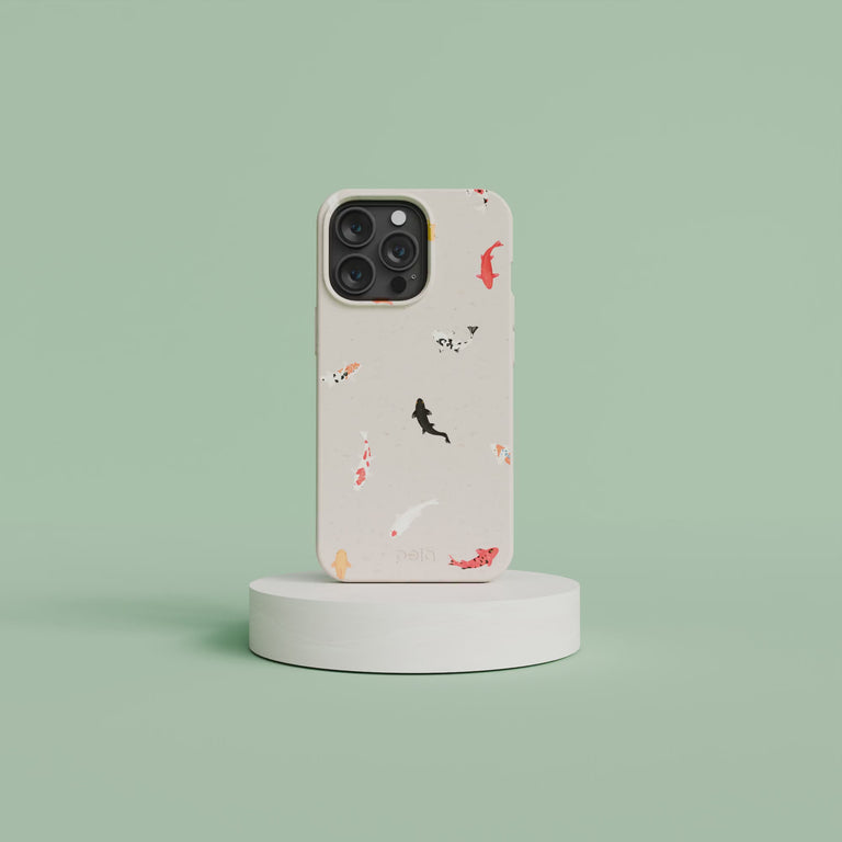 Bring the serene beauty of a koi pond to your pocket with the Pela Lil' Koi Phone Case! This charming case features a delightful dance of koi fish in vibrant oranges, reds, and blacks, set against a subtle seashell-colored backdrop. Each fish design swims playfully around your device, providing a splash of color and a zen vibe to your daily routine. Ideal for those who want to combine robust protection with a touch of tranquility, this case lets you carry a piece of the pond wherever you go! 🎏✨