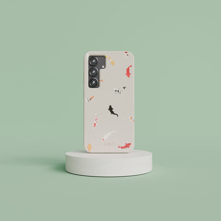 Bring the serene beauty of a koi pond to your pocket with the Pela Lil' Koi Phone Case! This charming case features a delightful dance of koi fish in vibrant oranges, reds, and blacks, set against a subtle seashell-colored backdrop.  Each fish design swims playfully around your device, providing a splash of color and a zen vibe to your daily routine. Ideal for those who want to combine robust protection with a touch of tranquility, this case lets you carry a piece of the pond wherever you go! 🎏✨