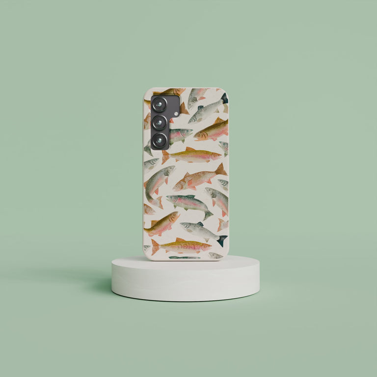 Trout lovers, this one's for you! Rainbow Trout Phone Case is packed with realistic fish illustrations, swimming across a natural-toned background for an effortlessly cool, outdoorsy look. Whether youโre knee-deep in a river or just love a good fish print, this case keeps your passion alive and your phone protected. ๐๐