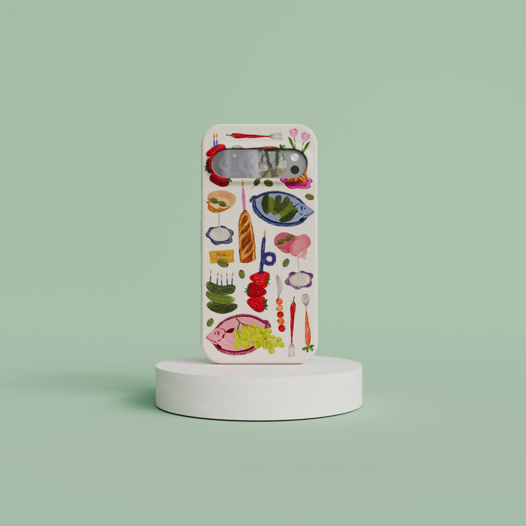 Dinner is served—but not as you know it! The Surreal Soirée Phone Case turns the traditional tablescape into a dreamlike masterpiece, featuring floating forks, stacked strawberries, sculptural baguettes, and fish adorned with leafy greens. Inspired by modern surrealism and Salvador Dalí-esque elegance, this case is perfect for those who love a bold, artistic twist on everyday moments.